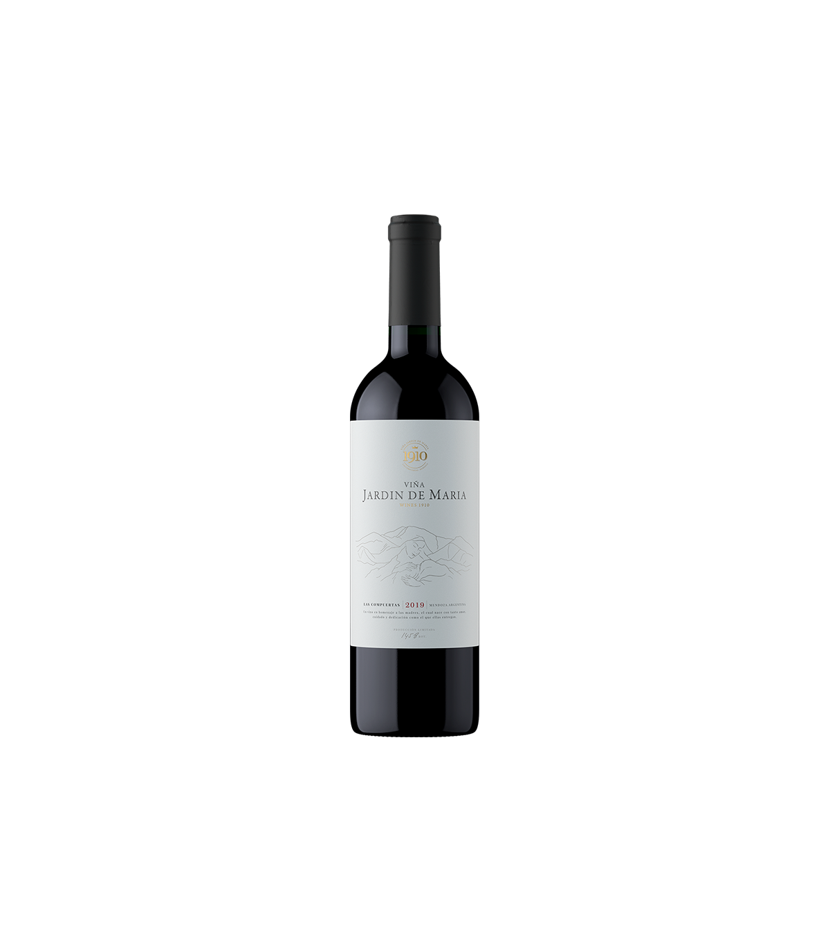 La Viña Jardín de María 1910, tiene solo 4 hectáreas. Este viñedo histórico inicialmente plantado en el año 1910 está formado por 5 pequeñas parcelas. Es conocido en la zona por ser un viñedo del cual sus viejas plantas madre dieron vida, con sus barbechos y pequeñas cepas, a otras viñas en Mendoza. Viña Jardín de María Cabernet Sauvignon 2019 proviene de la Parcela 4 Oeste y de una selección solamente de las cepas antiguas las cuales son marcadas e identificadas antes de su cosecha.
