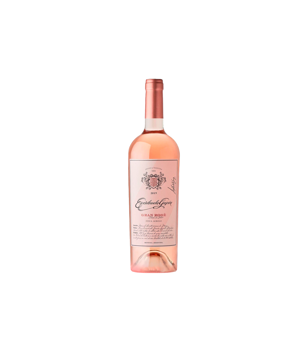Este Gran Reserva Rosé de Escorihuela Gascón proviene de viñedos ubicados en Agrelo, Luján de Cuyo (Mendoza), donde la altitud, el suelo y el clima se combinan para entregar una uva de gran calidad. Elaborado con un corte de 75 % Syrah y 25 % Sangiovese. La fermentación se realiza en tanques de acero inoxidable, con breve crianza sobre lías para aportar textura sin perder frescura.